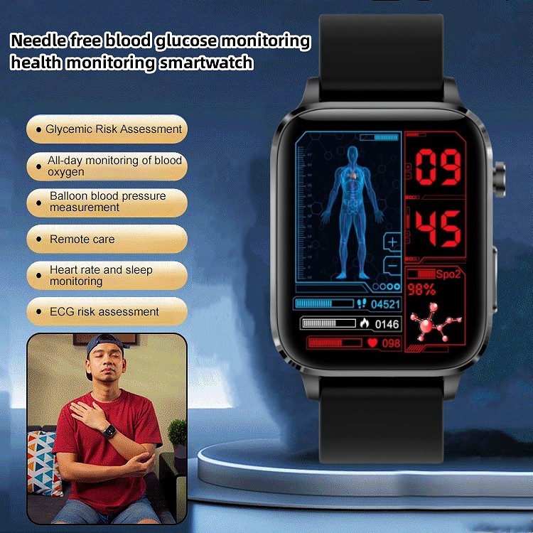 Painless blood glucose monitoring, heart rate, blood pressure, blood oxygen monitoring, health monitoring smartwatch