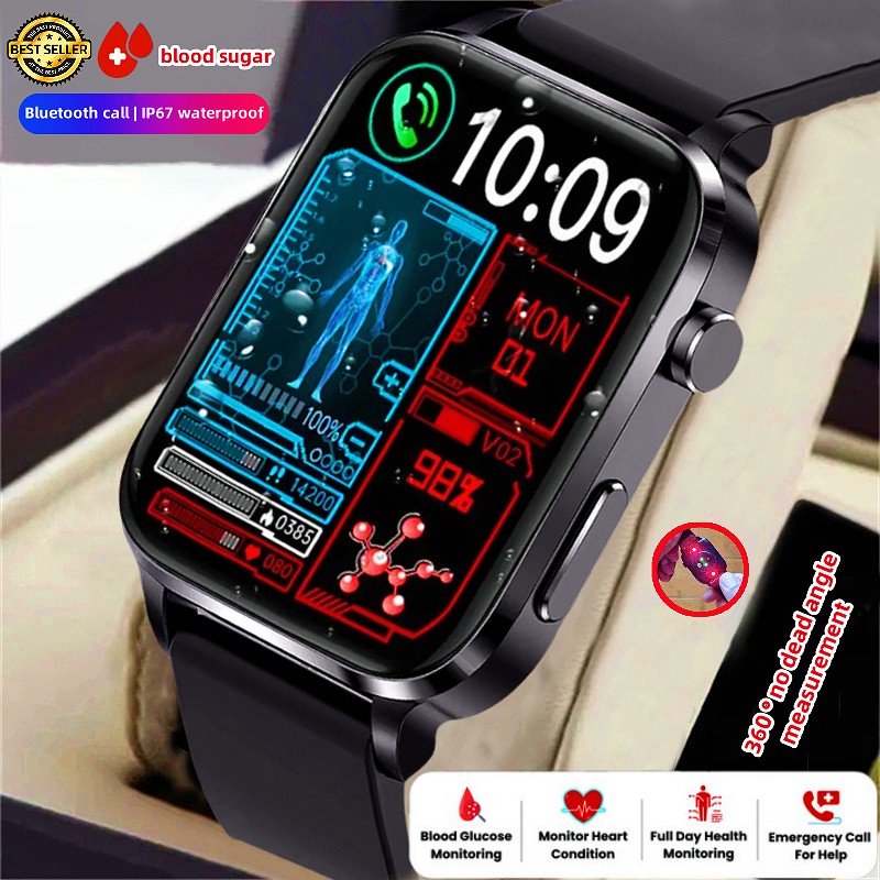 Painless blood glucose monitoring, heart rate, blood pressure, blood oxygen monitoring, health monitoring smartwatch