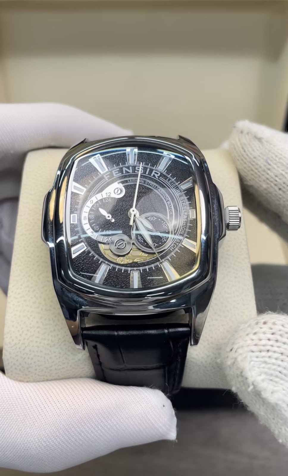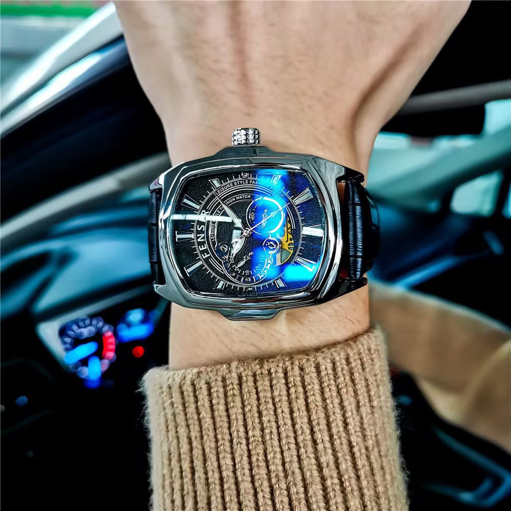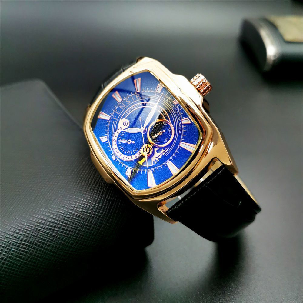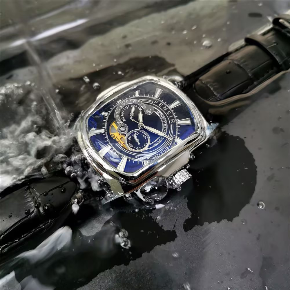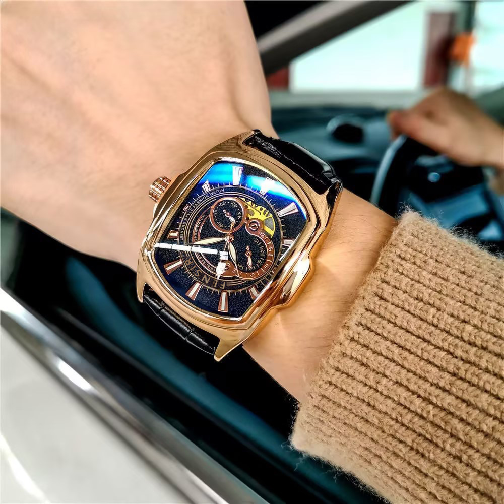 Men's Automatic Watches Luxury Men's Watches Gemstone Mechanical Watches Tonneau Case Rubber Strap Sapphire